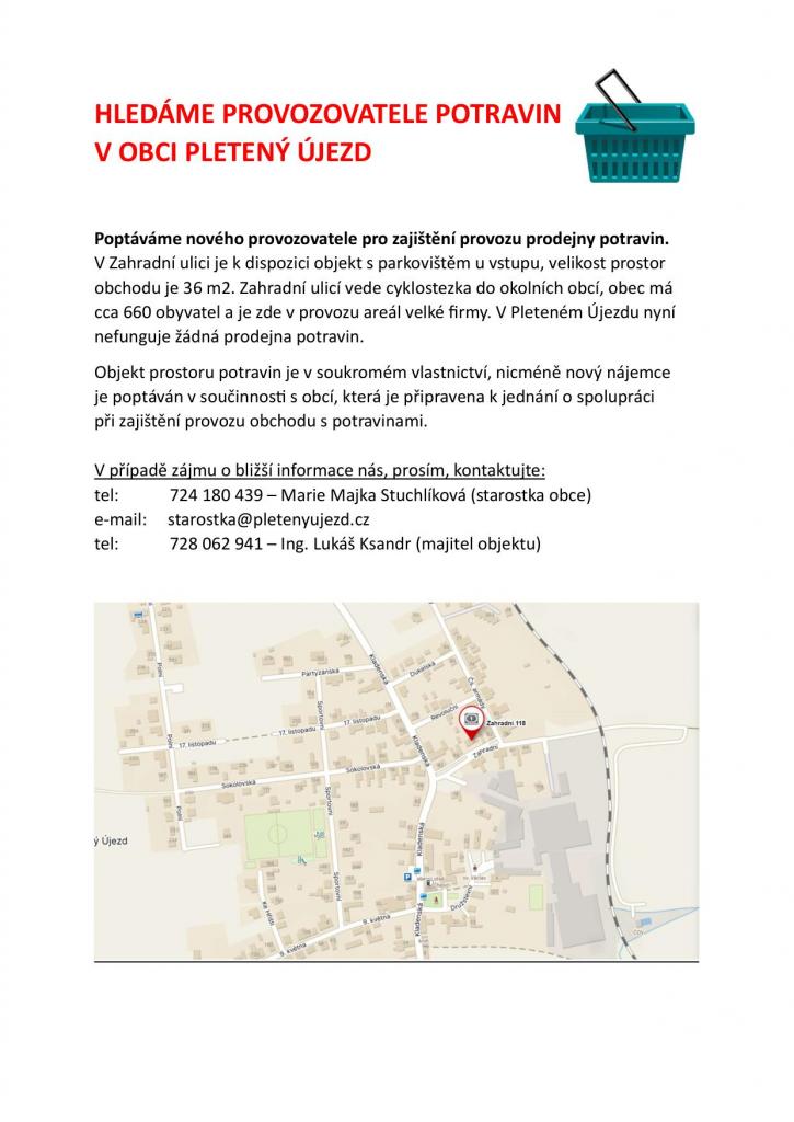Hledá se provozovatel potravin v Pleteném Újezdu