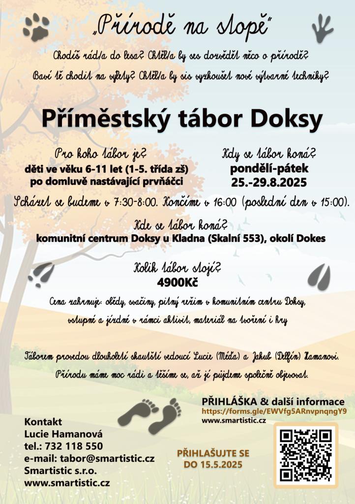 Příměstský tábor "Přírodě na stopě" zaměřený na aktivity v lese, tvoření a výlety do okolí.